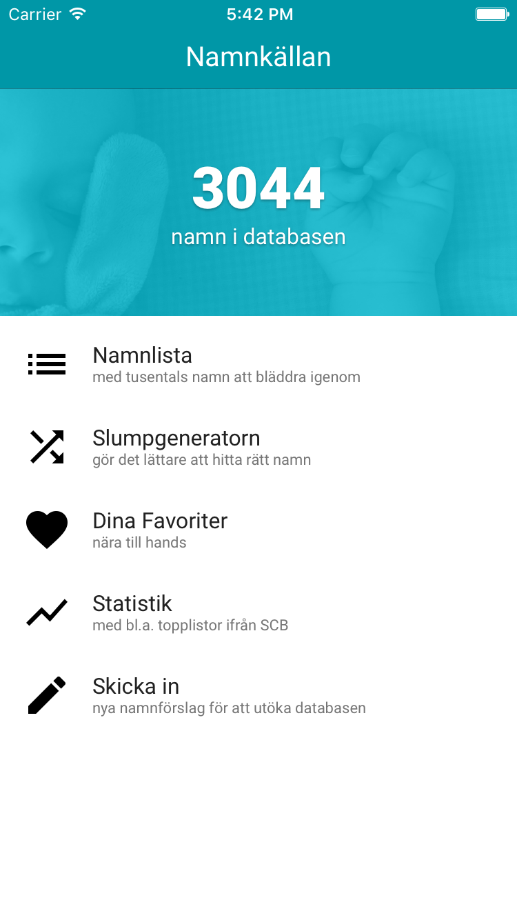 Namnkällan är en app för blivande föräldrar som hjälper till i jakten på det perfekta namnet. Drygt 3000 unika namn, dess beskrivningar och statistik ifrån Statistiska Centralbyrån (SCB) gör Namnkällan till en inspirationskälla för blivande mammor och pappar. Många namn innehåller dessutom namnsdagar, både officiella och inofficiella. För de som inte vill lägga vikt på könsrollen finns en lista med s.k. unisex namn.