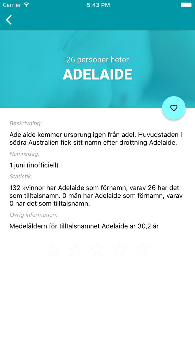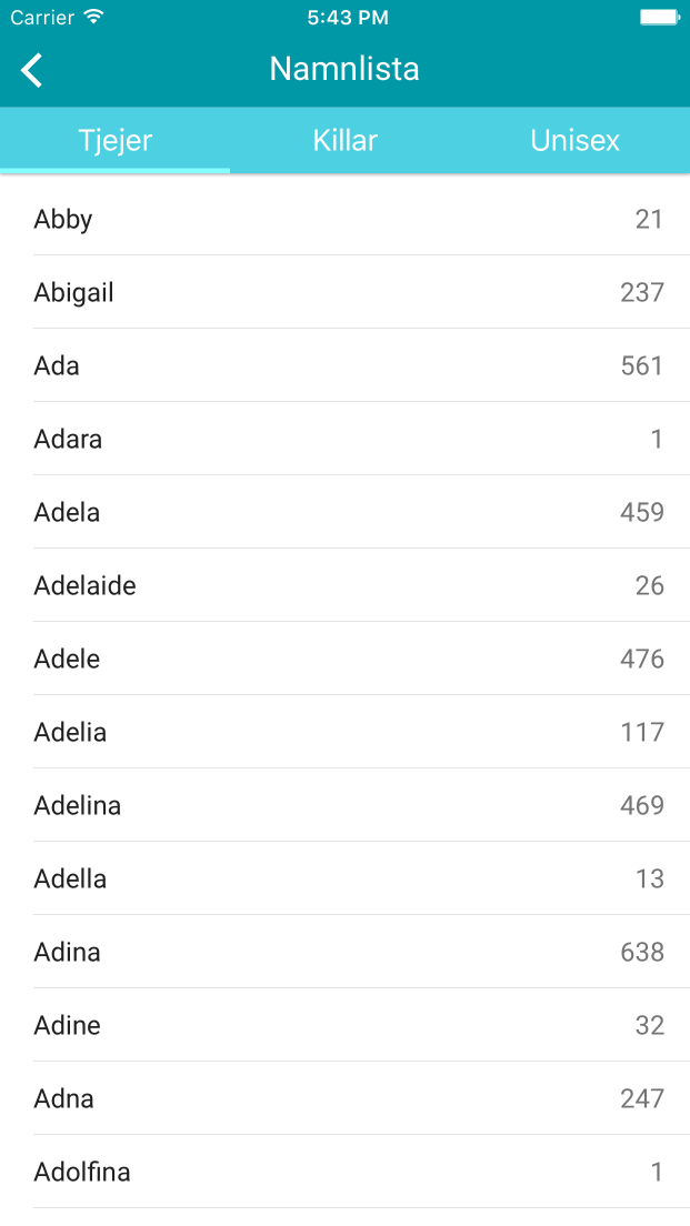 "Tycker det är en jättebra app. Plus för att man kan spara favoriter, lätt att navigera i och roligt att se populära namn och antal."